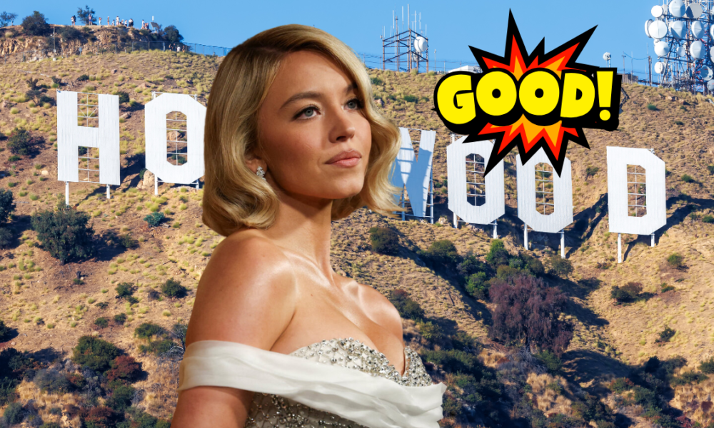 Sydney Sweeney scala la scritta Hollywood e la “veste” di reggiseni: il blitz notturno che lancia la sua nuova linea di intimo